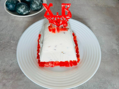Спустя указанное время пасху аккуратно переверните на блюдо, снимите марлю. Украсьте пасху по желанию - орехами, цукатами, сухофруктами, кондитерской посыпкой, конфетами. Храните ее в холодильнике несколько дней. Приятного аппетита!