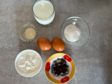 При необходимости желейную смесь процедите через ситечко и дайте ему немного остыть. Соедините желейную смесь с молочно-яичной, перемешайте. Дайте остыть смеси при комнатной температуре.