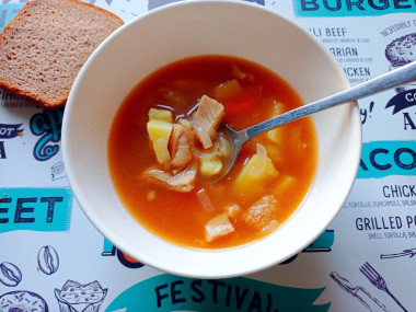 Суп получился достаточно густой, наваристый, вкусный. Мне очень понравился вкус томатного соуса в бульоне (я использовала обычный кетчуп). Суп ели и взрослые, и дети. Очень здорово, что из обычных продуктов можно приготовить такую вкуснятину.