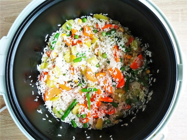 Рис для этого блюда лучше использовать пропаренный или длинозерновой. Рис тщательно промываем, неоднократно меняя воду, пока она не станет прозрачной. Репчатый лук чистим и нарезаем мелкими кубиками. Мультиварку можно использовать для приготовления этого блюда любой модели, какая имеется под рукой, но выбрать нужную программу в зависимости от ее функциональности. В чашу мультиварки наливаем растительное масло, включаем программу «жарка» на 10 минут. Обжариваем на масле лук до прозрачности, помешивая его лопаткой, чтобы он не начал гореть. К репчатому луку в мультиварку закладываем мексиканскую смесь, кладем ее замороженной, размораживать ее предварительно не нужно, чтобы овощи сохранили форму и в них сохранилось максимум полезных веществ. Обжариваем овощи вместе в течение 10 минут. Затем добавляем промытый рис, заливаем чистой холодной водой, включаем программу «тушение» или «крупа» на 30 минут. За 10 минут до конца приготовления блюда добавляем соль, черный молотый перец или иные специи по вкусу, перемешиваем. Практически вся жидкость за это время должна выпариться, рис разбухнуть. Дожидаемся звукового сигнала мультиварки. Блюдо готово. Получается быстро, вкусно и полезно. Приятного аппетита!