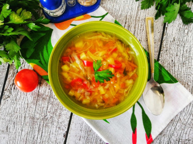 Суп по этому рецепту вышел очень легкий и насыщенный, с обилием вкусных и полезных овощей! Для себя я его назвала "Витаминный", а готовила, взяв за основу рецепт овощного супа ПП для похудения.