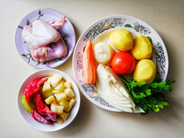 Добавила овощи в кастрюлю с курицей, которая на тот момент стояла на огне уже минут 10-15. Варила суп ещё около 30 минут, в конце посолила. Он вышел очень красочный, как будто лето заглянуло в окошко. Овощи в супе мягкие и аппетитные! Съели супчик с удовольствием! С таким же удовольствием буду делать его еще, тем более, что готовится он очень быстро!