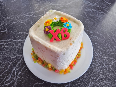 Очень люблю творожные десерты. Готовила пасху царскую заварную к празднику по этому рецепту. Вышло всё на отлично. Великолепная идея сделать пасочницу своими руками. Я использовала ведёрко из плотного пластика, сделав отверстия. Для теста использовала домашние яйца и домашний жирный творог. Добавляла в тесто вместо изюма и орехов большое количество цукатов. Приготовление не заняло много времени. Смешала всё, заварила и остудила. Сложила творожную массу с цукатами в самодельную форму с марлей. Стояла моя пасха под гнетом (банка сока) в холодильнике ночь. Сыворотки выделилось не много. Пасха вынулась из формы отлично. Украсила пасху царскую заварную цукатами и венком из мастики.