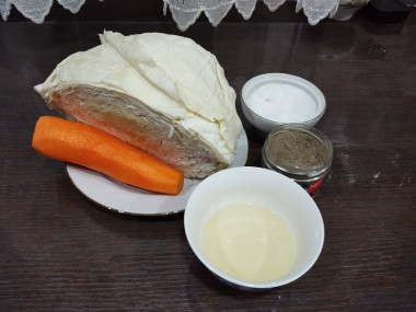 Как сделать салат Капуста с морковью и маслом? Очень просто. Подготовьте ингредиенты по списку. Вкуснее салат, конечно, получится из свежих и сочных овощей, только собранных с грядки. Белокочанную капусту очистите от верхних зеленых листьев. Кочан разрежьте на пару частей, удалите кочерыжку и нашинкуйте тонкой соломкой.