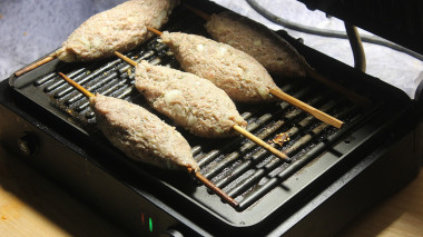 Жарьте кебабы на сильном огне, по минуте с каждой стороны, стараясь переворачивать их равномерно по кругу. На каждой котлете должна образоваться корочка, которая запечатает мясной сок внутри, что сделает ее более сочной.