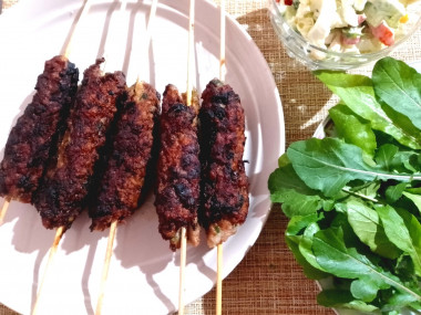Далее огонь сбавьте и доведите кебабы до готовности уже на небольшом огне, также переворачивая их время от времени. На это уйдет около 10 минут. Подавайте кебабы горячими с различными соусами. Приятного аппетита!