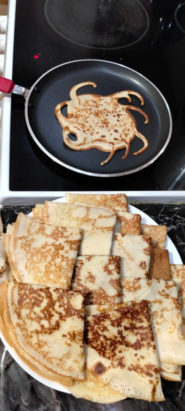 У моего теста сегодня видимо магнитная буря🤦 Поднималось и поднималось, уже после 20 минут отстойки. Кое как 50 минут простояло (с постоянными помешиваниями). Жарить начала, густое блин, решила добавить немного воды, но пены все равно было много вначале, от этого не получалось сделать их ровными. А дальше веселее, они почти все хрустящие получились в этот раз, дети сказали, что на вафли похожи🤣 Не пойму, что пошло не так. В прошлый раз все было идеально 👌 Видимо сегодня Меркурий в Венере или еще чего-нибудь 🤣🤣🤣