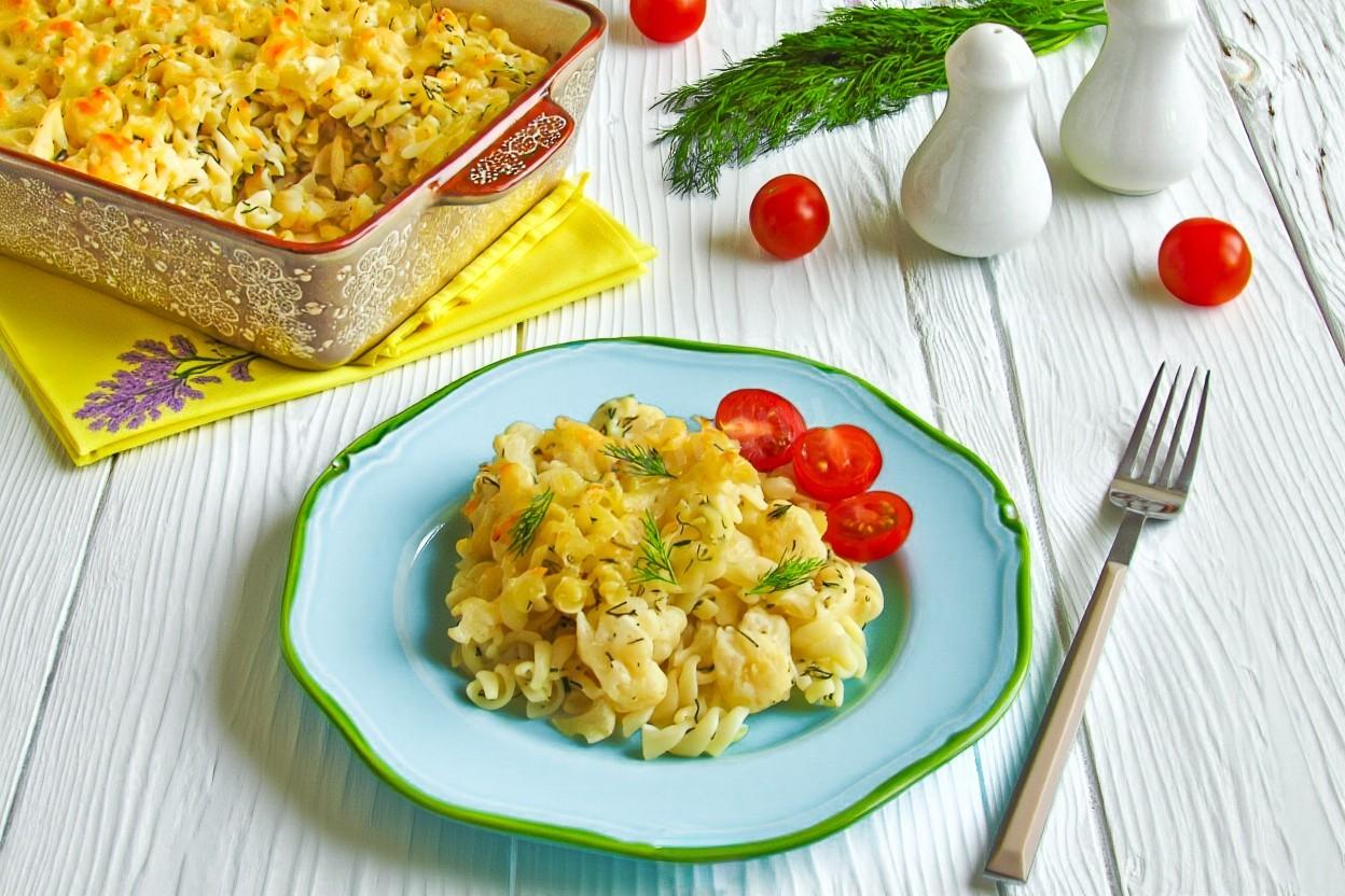 Цветная капуста с макаронами - новый для меня рецепт. Запекала с картошкой, мне понравилось.