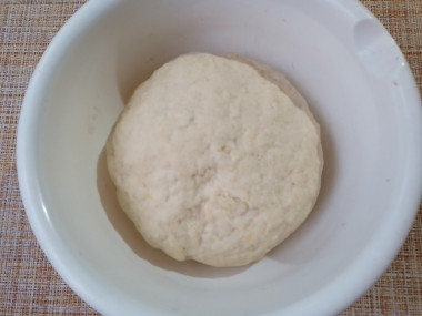 Замесить слегка липкое эластичное тесто. Я замешивала с помощью кухонной машины с помощью насадки для теста "крюк". В процессе пришлось досыпать еще немного муки. Накрыть тесто полотенцем и оставить в тепле на 1 час.
