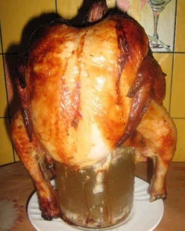 Очень красивое и нарядное блюдо для праздничного застолья! Особо почётное место занимает в списке моих любимых блюд курица в духовке целиком на банке. Рецепт из советской юности. Нашпигованная чесноком, с ароматными специями, это просто песня! Спасибо, что напомнили про любимый рецепт!