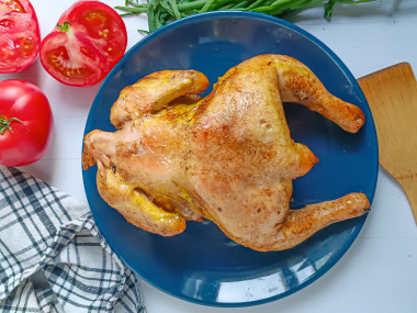 Банку для запекания курицы взяла 800-гр. Запекалась курица 1 час 40 минут. Курочка получилась румяная, ароматная. Сверху у неё аппетитная красивая корочка, а внутри курица мягкая, сочная и нежная.