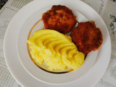 В качестве панировочных сухарей я использовала японские под названием панко. Их текстура и качество мне нравятся больше, чем у обычных сухарей из батона. Сам рецепт оказался несложным, единственное, что лопаткой перенести шницель из яичной массы в сухари мне не удалось. Пыталась эту манипуляцию проделать даже двумя лопатками, но увы.. Однако выход я нашла, просто аккуратно снизу брала двумя ладонями и переносила в тарелку с панировочными сухарями. После обжарки шницель переворачивался уже легко. В общем, рецепт очень интересный, вроде и не котлеты, вроде и не шницель) Спасибо за такую классную идею!
