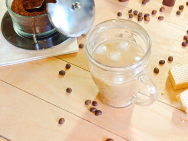 Я сварила кофе в турке, но можно использовать алюминиевую кофеварку с фильтрами, которую используют на родине этого напитка. В расчете 2 ч.л. молотого кофе на 150 мл воды. И при варке кофе в турке или приготовлении во френч-прессе напиток следует дополнительно профильтровать. Охладите кофе, можно это сделать классическим способом – при естественных условиях. При стремительном охлаждении свежесваренный кофе мгновенно охлаждают теплообменной системой.
