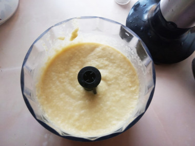 Теперь займитесь тестом для колдунов (драников). Картошку очистите и натрите на самой мелкой терке. Для экономии времени картошку можно также пропустить через мясорубку. Но в оригинальном рецепте от бабушки была именно терка, такая с шипами, которая трет очень мелко, практически в пюре.