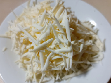 Плавленый сырок заранее положите в морозильную камеру на пол часа. Благодаря этому он будет лучше натираться. Натрите его также на крупной или среднего размера терке.