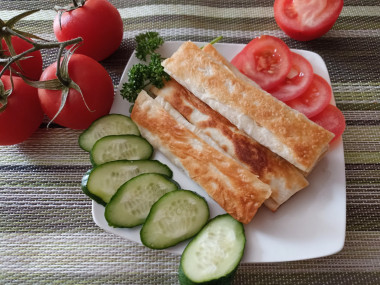На перекус решила приготовить лаваш колбаса сыр яйцо на сковороде. Ингредиенты для начинки измельчила на тёрке, добавила зелень укропа, соль, перец по вкусу, сметану. Лист лаваша разрезала на прямоугольники, завернула в них начинку. По совету автора края рулетиков не заворачивала. При обжарке начинка не вытекла (хотя сыр внутри расплавился). Зато рулетики получились хорошо прожаренные, хрустящие, без утолщенных краёв. Аппетитно, вкусно и сытно! Спасибо за рецепт, katushafin!