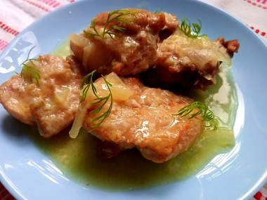 Вино играет роль маринада, а вот готовить мясо можно как на сковороде, так и в духовке.