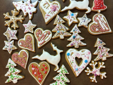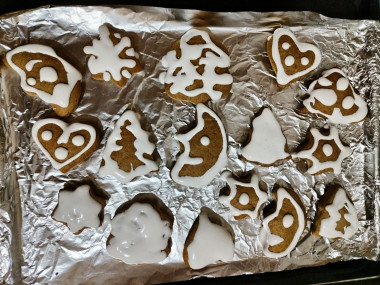 Раскрасьте пряник густой белой глазурью по своему желанию, как вам подсказывает фантазия! Вкусные новогодние имбирные пряники с глазурью готовы!