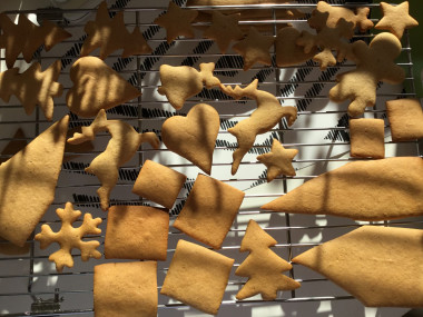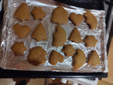 Изданного количества теста у меня получилось два противня пряников. Советую раскатывать их толще, около полутора сантиметров. Мои получились похожи на печенье, но у меня слишком маленькие формочки. В следующий раз вырежу пряники по крупным трафаретам.