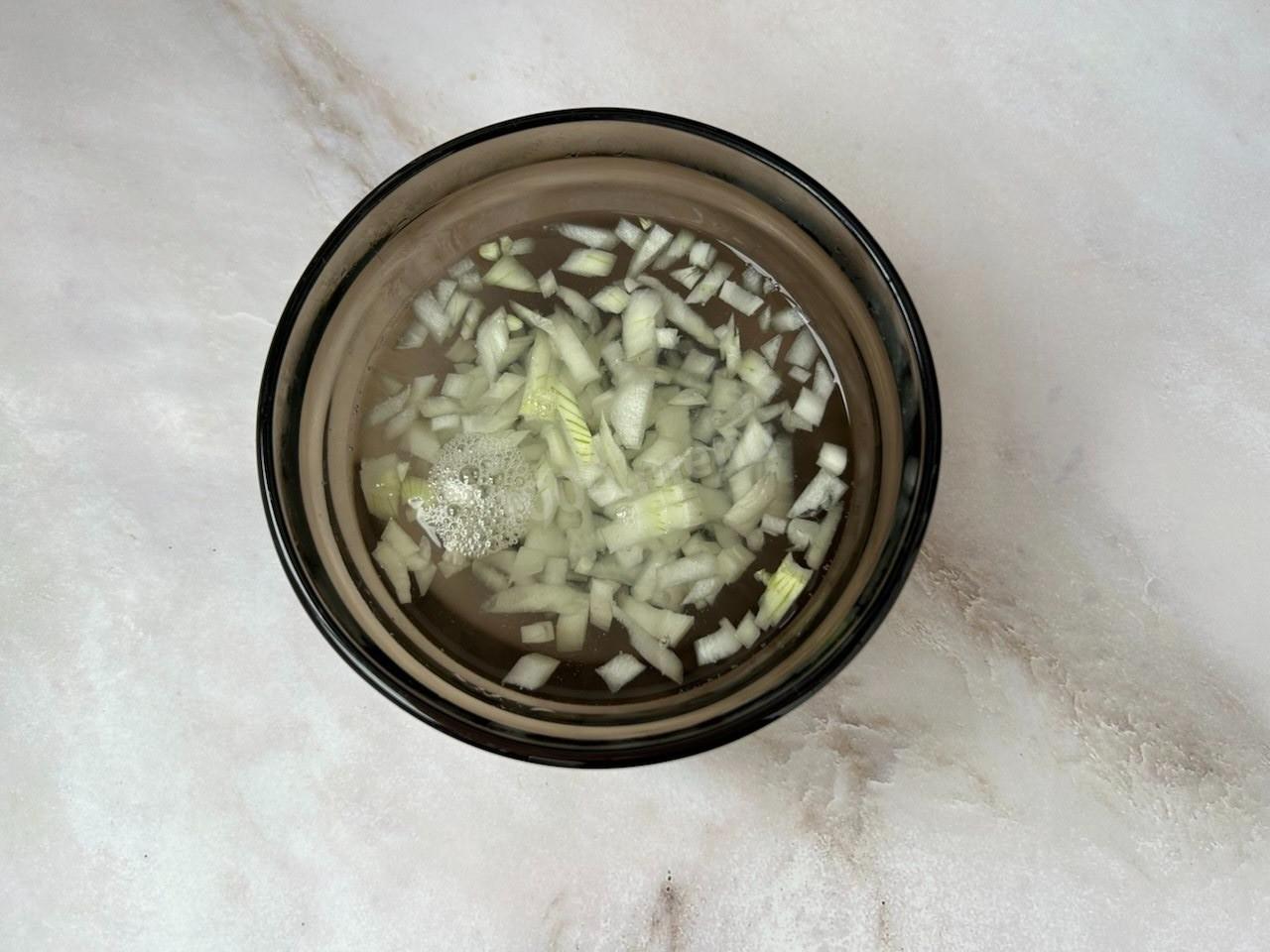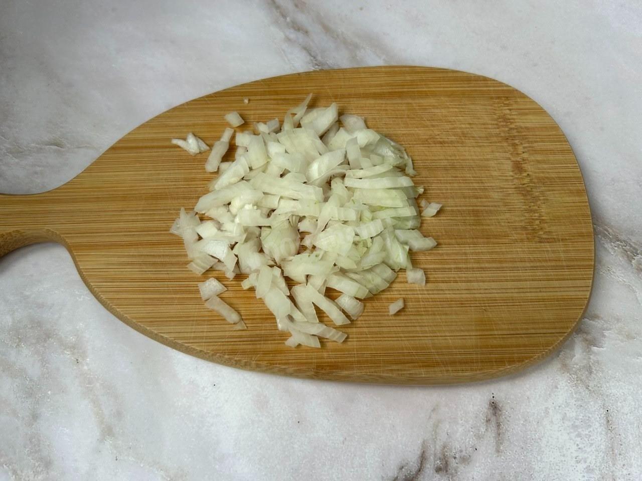 Лук очистите от шелухи, промойте и мелко порежьте.