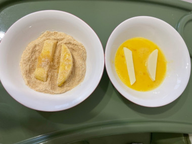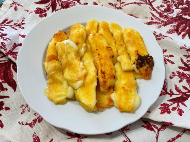 Таким же образом в панировочных сухарях можно пожарить и твердый сыр.