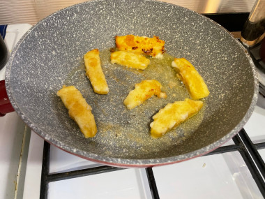 Эта закуска, в виде жареного сыра, относится к грузинской кухне.