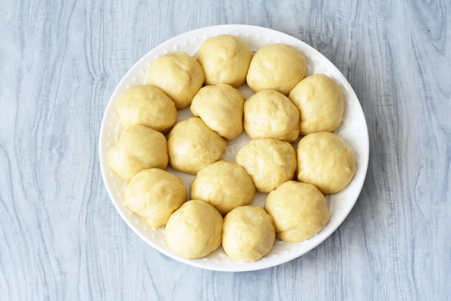 Тесто обомните и разделите на 16 равных кусочков. Каждый кусочек подкатайте, формируя шарик.