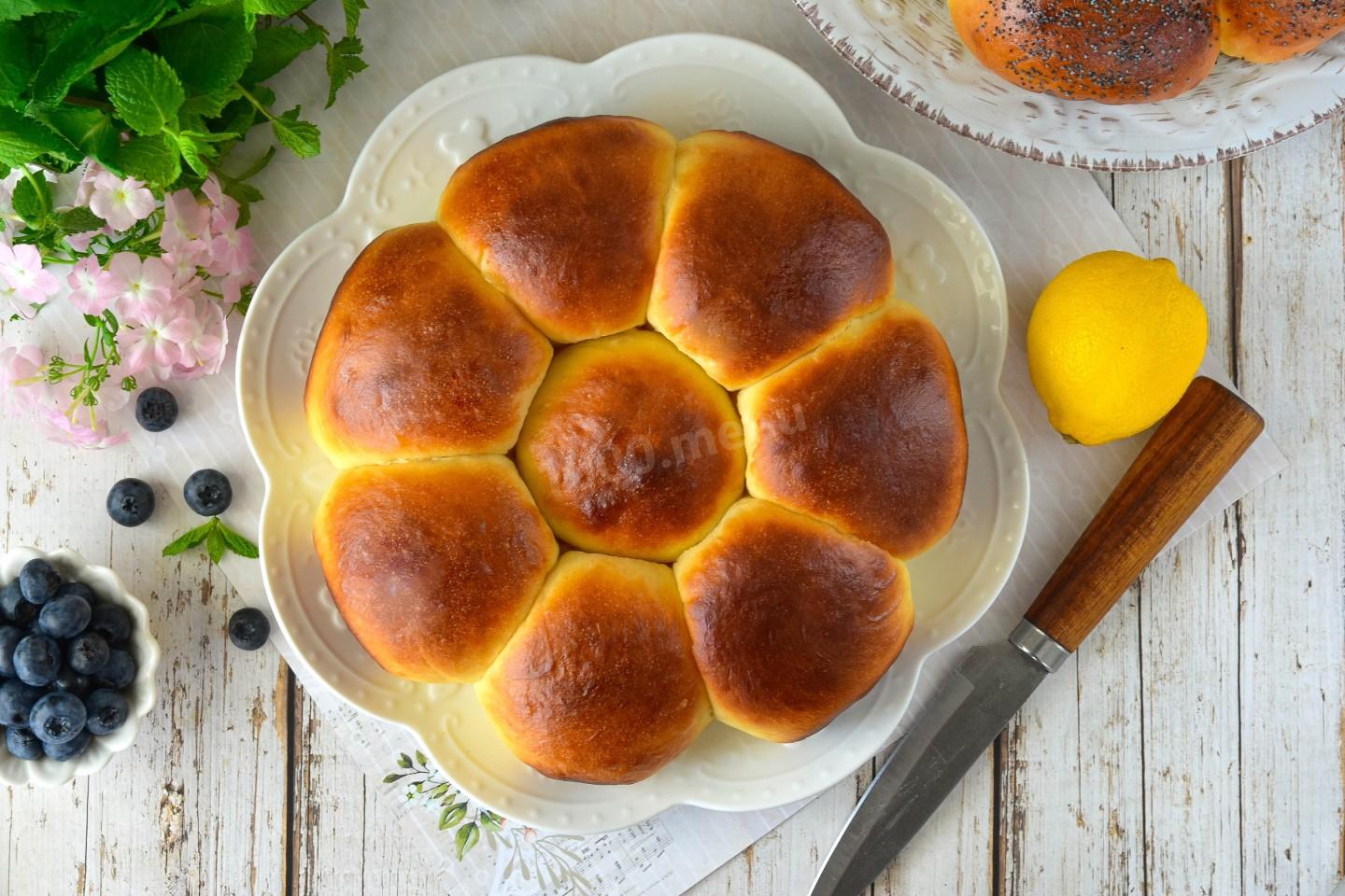 Булочку Ромашка переложите на блюдо и сразу подайте к столу. По желанию можете посыпать булочки сахарной пудрой. Но выпечка и так получается достаточно сладкой. Приятного аппетита!
