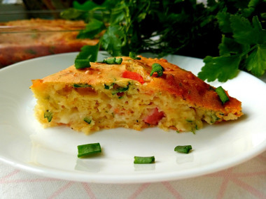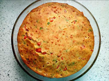 Этот пирог один из самых быстрых и легких из всего, что я знаю. Готовлю его, когда совсем нет времени или сил. Тесто замешивается за считанные минуты. Останется только порезать ветчину, натереть сыр и измельчить зелень. И добавить все это в тесто.
