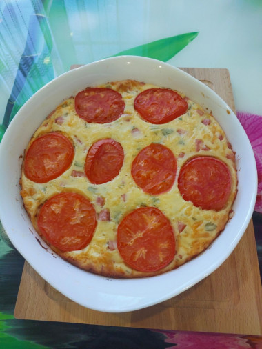 Этот пирог с ветчиной и сыром просто палочка-выручалочка! Мне нужно было приготовить что-то на перекус между приемами пищи. В закладках давно лежал рецепт пирога на этот случай. Порция мне показалась маловатой для нашей семьи, сделала двойную порцию) Тесто замесилось моментально, пирог тоже быстро выпекается. В тесто добавила сушеную петрушку, немного сушеного чеснока и базилика. Для начинки взяла три ветчинные сосиски, два вида сыра, петрушку с зеленым луком. От себя добавила немного помидоров кусочками для сочности и цвета. Получился пирог похожий на пиццу) Очень вкусный, сытный и ароматный! Это идеальный перекус. Тесто в пироге получилось с крупными порами, вкуса соды совсем не чувствуется. Расплавленный сыр в пироге придает нежности и понравится всем любителям сыра. Такой яркий и красивый пирожок. Рекомендую всем попробовать!