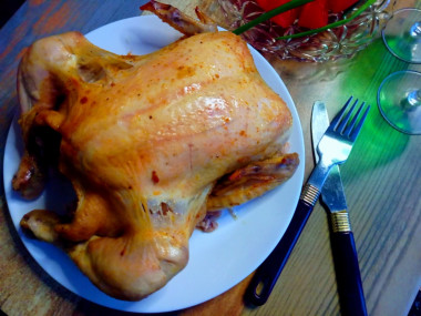 Запечённая целиком курица всегда получается очень вкусной и сочной. Добавляя различные специи и чеснок аромат от её приготовления слышится очень далеко. А запекая фаршированную яблоками, получается праздничная и богатая на вкус курица.