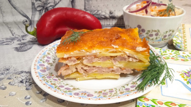 У меня запеканка выпекалась около полутора часов. После часа в духовке картофель все еще оставался сыроватым. Я накрыла ее фольгой и оставила еще на полчаса.