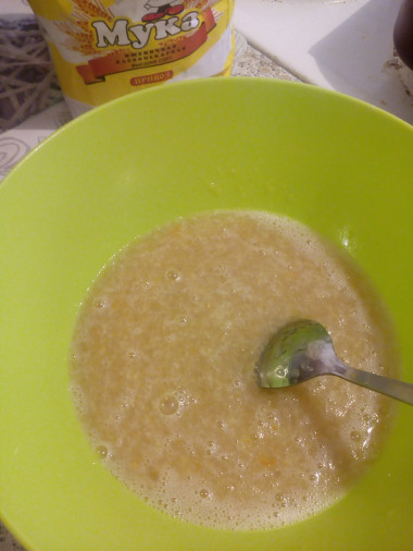 У меня было кабачковое варенье с лимоном, густотое как конфитюр, и муки понадобилось приблизительно в два раза меньше. И добавила щепотку соли в яйца (не могу без соли). Сверху натерла цедру мандарина для аромата =) Получилось вкусненько.