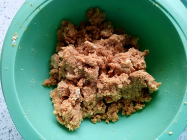 Насыпьте размолотое печенье в миску, налейте кофе. Добавьте сыр.