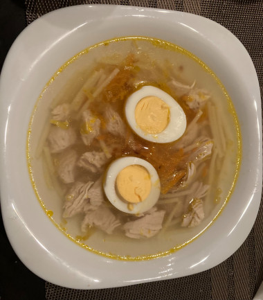 Первое блюдо с секретом! Самый вкусный и наваристый! Куриный суп по особенному рецепту с домашней лапшой. Потрясающий аромат и незабываемый вкус этого супа покоряют навсегда! Он идеально подходит для того, чтобы мгновенно согреться, когда холодно, восстановить силы после физического труда и зарядиться энергией для быстрого выполнения оставшихся дел. Сытный куриный бульон и нежная домашняя лапша с секретным тестом делают это блюдо любимым для всех членов семьи!