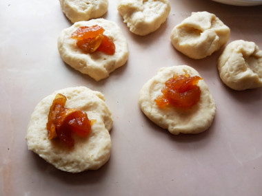 В центр положите чайную ложку джема.
