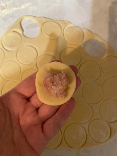 ....но устояла от соблазна!!!Всё получилось идеально.Тесто очень нежное и эластичное.оно прекрасно раскатывалось.очень тоненько и не съёживалось.а главное прекрасно лепилось и не липло к рукам.Во время варки ничего не развалилось.Часть пельмешек заморозила.выглядит тесто супер нет не единой трещинки!!!Супер тесто.супер рецепт!!!Спасибо автору!!!