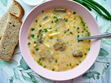 Сырный суп с шампиньонами по вашему рецепту получился восхитительным! Шампиньоны использовала замороженные. Делала всё строго по рецепту. Посолила суп в самом конце приготовления, после добавления плавленого сыра, боялась пересолить Опять стесняюсь, так как сыр тоже солёный. Перед подачей посыпала мелконарезанным зелёным луком. Сырный суп с шампиньонами обладает нежным, сливочным вкусом с лёгкими грибными нотками. Очень-очень вкусный Нямка и теперь самый любимый суп в нашей семье С любовью. Спасибо большое за рецепт!