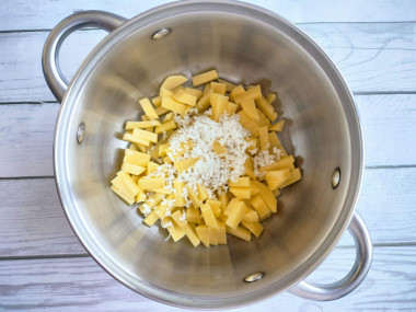 Добавьте плавленый сыр, хорошо всё перемешайте.