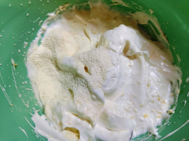 Теперь аккуратно добавьте в белковую массу кокосовую стружку.