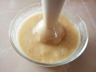 Когда желатин будет готов к использованию - займитесь муссом. Для этого возьмите бананы, снимите с них кожуру, поломайте на кусочки и немного полейте лимонным соком. Это необходимо для того, чтобы банан не потемнел. Измельчите бананы с помощью погружного блендера в пюре. Масса должна стать однородной, совершенно без комочков. Чем спелее будут бананы, тем слаще и нежнее будет вкус у готового мусса.