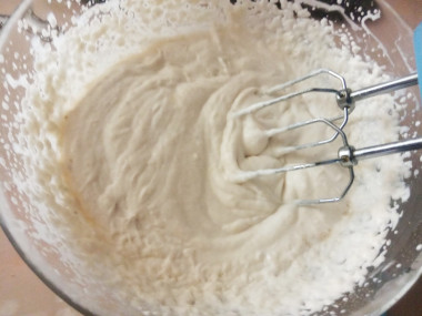 Затем выложите в сливочный крем банановое пюре и перемешайте до однородности с помощью венчика.
