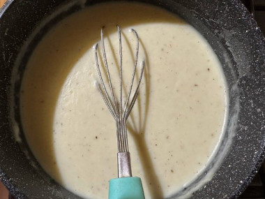 Продолжайте варить соус до нужной консистенции — он должен стать как густая сметана. Соус бешамель лучше использовать сразу после варки, так как при остывании сверху на нем образуется молочная пенка. Если вы готовите его заранее, то накройте соус сверху пищевой пленкой так, чтобы она лежала на поверхности массы.