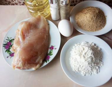 Вышло очень вкусно! Наверное, это лучшее, что можно приготовить из куриной грудки! Мясо получилось мягкое, сочное. Панировка - хрустящая, аппетитная, с приятным хлебным вкусом, отлично дополнившая курочку.