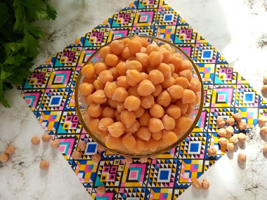 Спустя указанное время нут будет готов. Но на всякий случай нужно попробовать его - он не должен быть твёрдым, но при этом должен хорошо держать форму. Если планируете использовать нутовый отвар, то для большей насыщенности оставьте нут остывать в этом отваре.