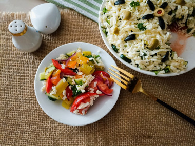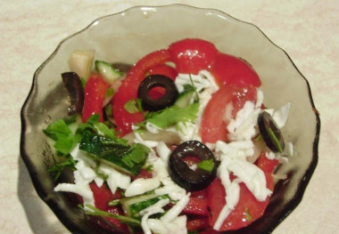 Аппетитная классика! Отличный салат на каждый день! Универсальный болгарский салат приготовлен из сочных овощей и гармонично дополнен измельченной брынзой! Отличное сочетание продуктов! Салат легко готовится и быстро съедается!