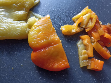 Если нет возможности по тем или иным причинам запечь болгарский перец, то используйте свежий.