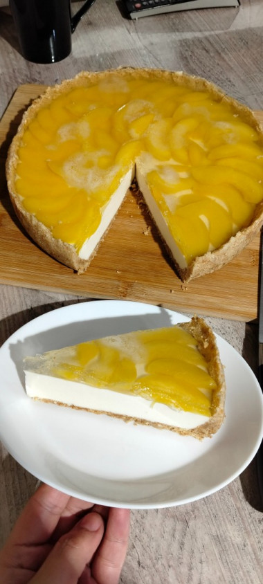 Прекрасный десерт получился, спасибо за рецепт♥️ Нисколько не сладкий, нежный и лёгкий 😋 Я верх обложила консервированными персиками, их же сироп немного разбавила соком яблоко-ананас. Данная Вами ссылка на подсчет ингредиентов под свою форму мне очень помогла, так как моя диаметром на 26👍 Единственное я видимо недогрела желатин для второй заливки, так как осталась пена, но ничего исправлюсь, с желанитон впервые работала😅 Готовится легко и просто, безумно довольна результатом, тем более делала впервые♥️♥️♥️