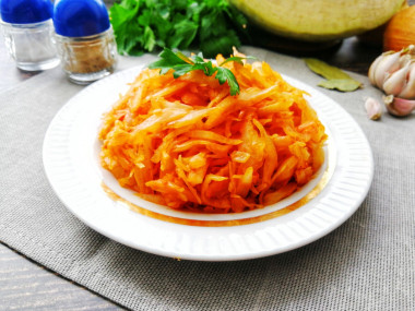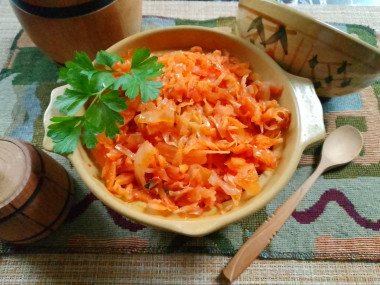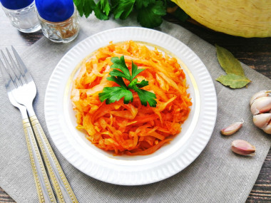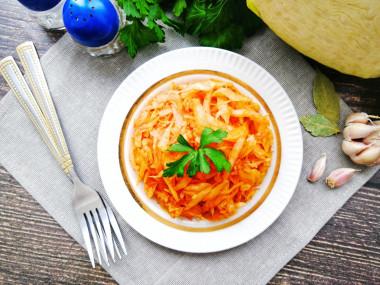 Несомненным плюсом является то, что готовка не занимает много времени. Сначала обжаривается лук, затем к нему добавляется капуста, лавровый лист и соль, тушится на маленьком огне 30 минут. Еще 10 минут уходит на тушение с томатной пастой.