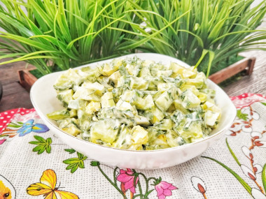Авокадо прекрасно в салата сочетается с огурцами. По желанию, салат можно заправить не майонезом, а сметаной или йогуртом.